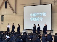 1限目は、新入生を迎える会でした。初めてたくさんの先輩たちと共に過ごす時間です。生徒会のみなさんがいろいろと考えて進めてくれました。今年の中部中学校は、プレゼンを頑張ります。早速、さまざまな活動にプレゼンが使われました。