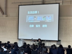生徒会が用意したプレゼンで学校紹介!あっ…入学式で校長先生が言われていた自律協生創発だぁ!