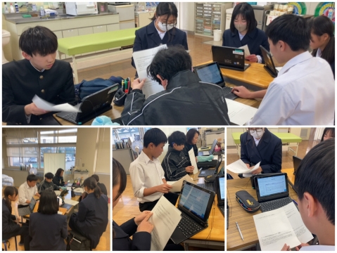 放課後の保健室をのぞいてみたら、タブレットを見ながら会議中。