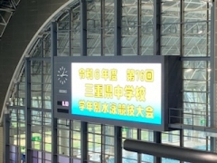 三重交通Gスポーツの杜にある鈴鹿水泳場を会場に行われた学年別水泳大会。中部中学校からは4名の生徒がそれぞれの得意を活かして、バタフライや平泳ぎ、自由形の50mから200mまで、さまざまな種目に出場しました。