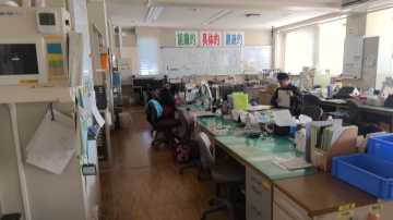 今日は電気関係の点検があり、13時より1時間、停電が行われる予定でした。停電は30分ほどで終わり、先生たちは仕事を再開。