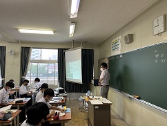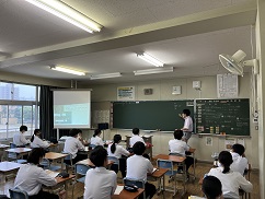 校内の公開授業月間として授業研究を行い,教職員が互いに研修を深めます。今日の1時間目は3年生数学の授業研究を行いました。