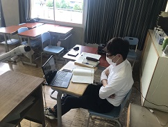 本日もオンライン授業でどのクラスの生徒も一生懸命取り組んでいる様子を見ることができました。毎日5時間も画面に集中しているとかなり疲れると思いますから,休憩時間に遠くを見たり目をつぶったりして上手に疲れを取って頑張ってください!