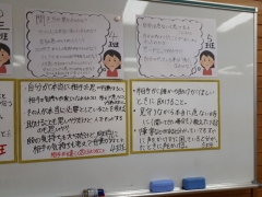 授業では人との出会いやふれあいを通して、自分の生き方を考える大切さに気付くことが出来ました。これから過ごしていく生活の中で、「すべての人が幸せに過ごせる社会」を目指して自分自身は何ができるのかしっかりと話し合うことができました。