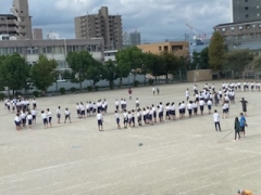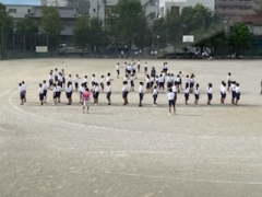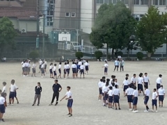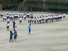 すこし秋が近づいたような、そんな過ごしやすい天気になりました。今日は1時間目に生徒会種目を行いました。1~3年生の縦割りを群として練習しています。