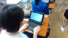 また、発育測定の空いた時間を利用して、【自己紹介カード】を作成しています。今年はタブレットを使用してのカード作成です。枠はあるものの、自由に変更していいカードになっています。できあがりがとっても楽しみ☆彡