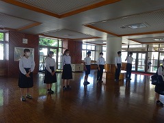毎週木曜日の朝、中部中学校の生徒会役員による「挨拶運動」が広げられています。本日、朝の様子です。おはようございます!おはようございます・・・なんと素敵な響き合いなのでしょう♡ 「美しく生きる」の基本ですね。つなげていきましょう。