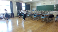 清掃の時間、みんなで役割分担をし丁寧に取り組んでいる班、時間の最後までやれることを行う班がありました。