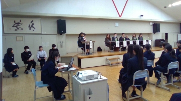 まずパネリストの方のお話を受けて、実行委員会が生徒パネリストとして自らの意見を発表、そののち質問をしていきます。他の生徒も自分から手を挙げたり、実行委員会から指名の受けたりしながら、発表していきました。