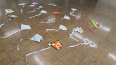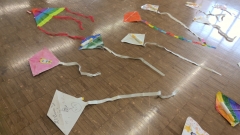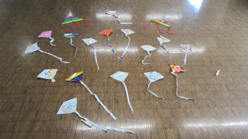 グラウンドに高々と上がるはずだった凧たちも少し寂しそうにワークスペースで休んでおりました。