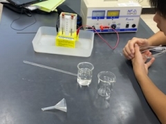 「水に電流を流したときの変化」について仮説を立てた後、実験活動を行い、考察しながら結果をまとめました。
