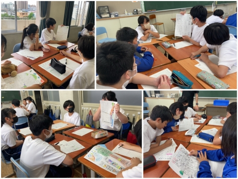 1年生の6限目は、自然教室新聞の発表会。