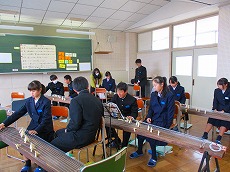 現在、1年生の音楽の授業では、箏の学習をしています。