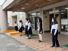 朝から生徒会役員を中心に行われている「あいさつ運動」が始まりました。爽やかな朝です。今日はみんなでテスト!頑張りましょう!