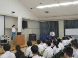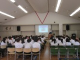 行っていただきました。気象に関わるお話を交えながら、自身が気象予報士になる過程をお話しいただきました。今日のお話しを自分の進路選択や生活の見直しにいかしていきましょう。
