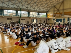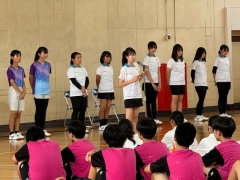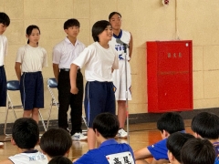 いよいよ今週末から夏の中体連が始まります。本日、運動部や校外活動部を中心とした壮行会が行われました。各部の代表者からは、大会への意気込みを発表してくれました。