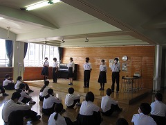 今日の朝集会のようす