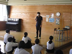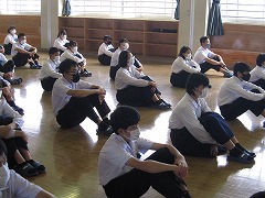 先生からは、授業や部活にしっかり取り組めているか、時間を守っているかなどの学校生活についてのお話がありました。2学期には職場体験があります。日ごろから言葉づかいや美しい態度を培っておきましょう。また、2年生が今取り組んでいる「職業調べ」でも、興味があること、やりたい仕事に憧れをもって取り組んでいきましょうというお話もありました。