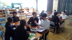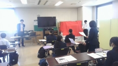 2年生では5・6時間目に四日市探究学習を行いました。6つのテーマに分かれて、事前に調べ学習をし、それぞれの訪問先や講義をしに来てくださった方へ質問をしたり、お話を聞いたりしました。防災グループでは、最初に四日市や三重県で起こった過去の災害、地形などについて講義をしていただき、後半ではクロスロード(二者択一)というグループワークをしました。防災は「自分事」という言葉や、その場で瞬間的に求められる判断の難しさを体験しました。