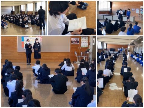 今日は、生徒会役員から「校則の改正」について説明がありました。