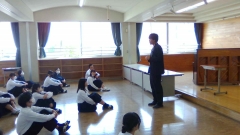 今朝、朝集会を行いました。今日は先生からの話がメインでした。