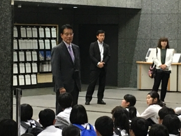 本校出身の岡田衆議院議員にお話しをしていただきました。