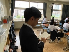 3年生は修学旅行二日目に入りました。今日の行程は班別分散学習と国技館で大相撲を見る予定です。さて、1・2年生は今日も元気に登校しています。月曜日から来ている実習生の2人も学びを進めています。