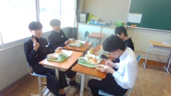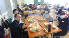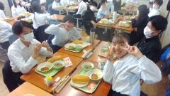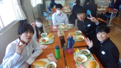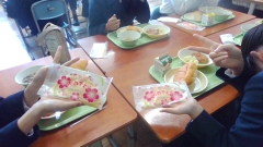 今日から給食がスタート!初日、、、とは思えないほどスムーズな準備!メニューにはお祝いクレープが♪