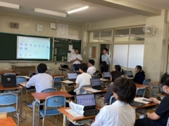 四日市市教育委員会から講師の先生をお招きして、ICTの効果的な活用について学んでいます。