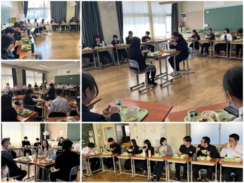 1,2年生の時の担任としてお世話になった森先生、山口先生、そして遠藤先生を招いての給食です。