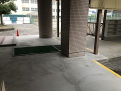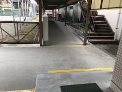 夏季休業中に行っていた体育館前通路のバリアフリー工事がほぼ完成しました。左の写真の「正門から自転車置き場へのスロープ」は完成しており,今朝も自転車通学の生徒がスムーズに自転車を押して通ることができていました。右の写真の「校舎から体育館へのスロープ」は体育館の入り口扉までが完成し,あとはその奥にある階段の注意喚起の塗装が乾けば完成です。段差がなくなったので,体育館での授業に向かう生徒が通りやすくなりました。