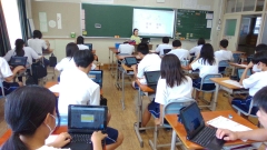 班での交流にホワイトボートを使うクラス、ジャムボードを使いみんなで意見を交流しているクラス、それぞれです。