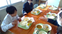 新しいクラスで新しい班での給食だったので少し緊張ぎみかな?