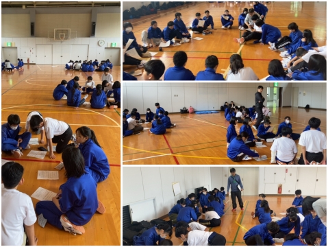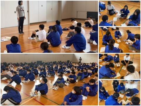 ワールド教室のある中部中です。外国から来た人達と一緒に暮らすために大事にしたいことを考えます。