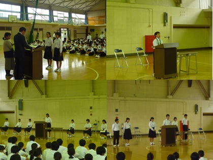 10月11日(木)6限目に表彰伝達と生徒集会を行いました。