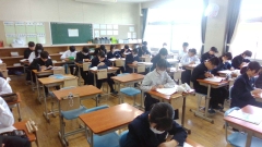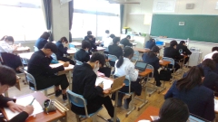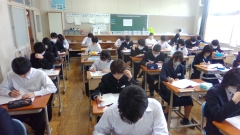 登校時間の8時30分。3年生のみんなは登校しているはずですが・・・?。ワークスペースはがら~んとし、とても静かな空間が流れています。教室をのぞくと机に向かって黙々と学習に取り組んでいました。そうです!今日より“朝の補充学習”。朝の落ち着いた雰囲気でしっかりと取り組めました。?