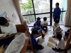 しおりの行程を予定通りに進めることができ、時間に余裕ができたので暫しのくつろぎタイムです。慣れない環境で疲れが溜まっている人もいるようです。逆に元気に溢れている人も中にはいます。真面目にしおりの振り返りを記入する人、部屋のみんなでトランプをする人、筋トレをする人、将棋をする人etc.. しっかりと仲間とコミュニケーションをとり、絆を深めようとしています❗