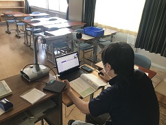 先週お伝えしたように,今日から日課を変更して,朝の会から1限目開始までの時間を10分間増やしました。朝の会で接続がうまくいっていなかったクラスも1限目開始を10分遅らせたことで授業時間が削られることなく授業を開始することができました。写真は今日の1限目の各クラスの様子です。