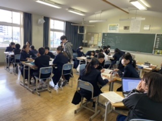 また、今回はどのクラスも担任ではなく、他の1年生の先生が授業を行いました。いつもと違う雰囲気の中、緊張しながらも意欲的に取り組むことができました。