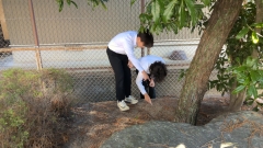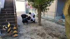 本日、3年生の理科の授業で「土の中の生物のはたらき&分解者の役割」について学習しました。教室での学びにとどまらず、実際に外に出て、土の中にどのような生物が暮らしているのかを調べる観察活動を行いました。