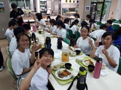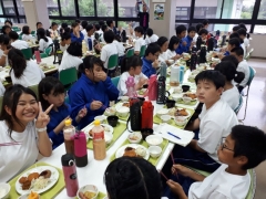 様々な活動を経て、一生懸命にからだを使い、頭も働かせたと思います。栄養補給をしっかりして、明日に備えて体力を回復させましょう。食事で心や体を育むことも大切です。皆さん、いい笑顔です❗