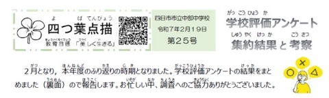 2学期末にご協力いただいた学校評価アンケートの結果と考察をお知らせします。