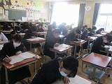 3年生の実力テストの様子です。一人ひとりが真剣に取組んでいます。3学期はいよいよ進路決定の時期です。体調管理をしっかりと行い、最高のコンディションで臨んでいきましょう。また、中学校生活の総まとめの時期ですので、授業や学校生活に今まで以上にしっかりと取り組んでいきましょう。