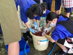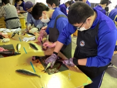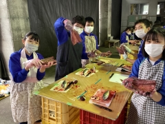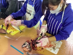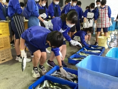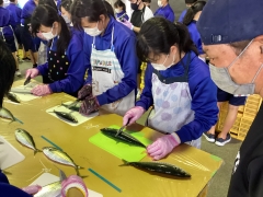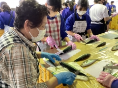 開いた魚を洗ってまーす
