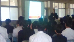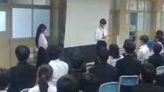 次に明石先生からスライドを使用しての三日間の行程について説明がありました。時には笑いを交えながら生徒たちも興味津々でワクワクで話に聞き入っていました。