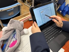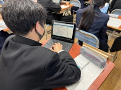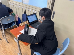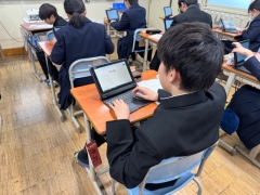 今日は職業適性検査をタブレットで行いました。「えっ!こんな仕事が自分にむいてるんだぁ」「やりたい仕事だった」「あたってるー」などとたくさんの感想が出ていました。自分の新しい可能性を知るとみんながニコニコする場面が増えていました。