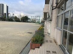 昨日の体育祭の熱気も冷めて,校舎南側の花壇の花が昨夜の雨に濡れてしっとりとしています。例年よりも長期にわたって花が咲いているように思います。養護の渡邊先生と用務の徳永さんに