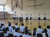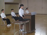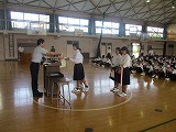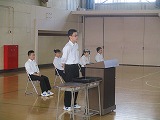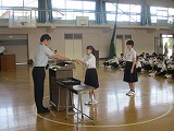 本日6限目に表彰伝達と学校集会を行いました。学校集会では各専門委員長より先月の委員会活動の反省、各クラスの室長よりクラスの様子について報告がありました。各委員長、室長は大きな声で分かりやすくつたえようとしている姿が印象的でした。このような場でも話す、聞く力をつけていってほしいと思います。