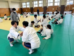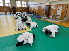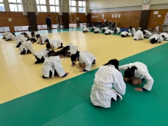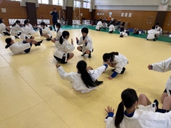 校内を歩いていると武道場からバンバンとリズミカルな音が…授業をのぞかせていただくと柔道の授業をされていました。楽しさを味わいながら体を動かし、経験の少ないスポーツにチャレンジする姿はとても良い光景でした。スポーツに親しみを感じながら、体力の向上も考えられており、とても良い授業を見させていただきました。先生も高校時代、柔道の授業が科目であったので、受け身を見るのも久しぶりで懐かしかったですよ。