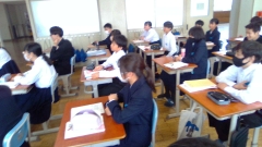 2年生の授業に新しく国語の道浦縁(みちうらゆかり)先生が来てくださいました。